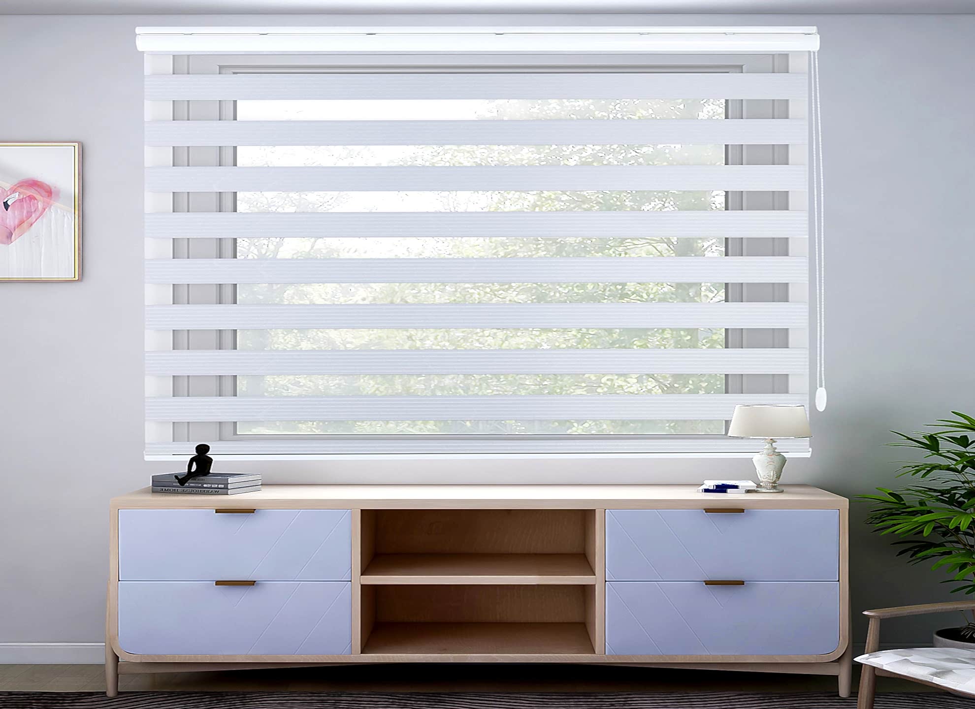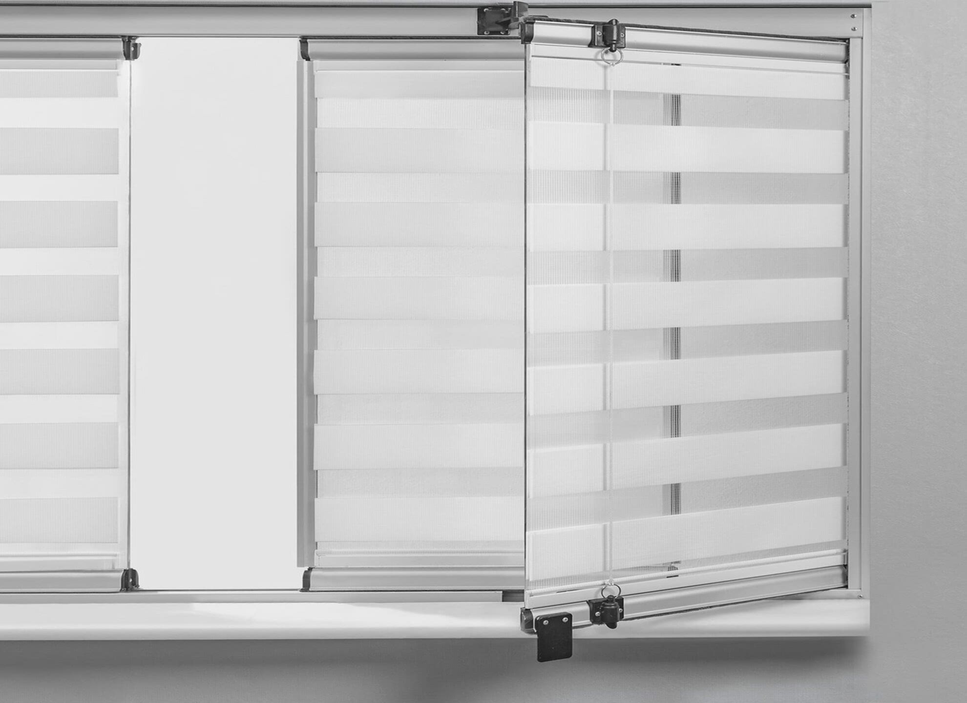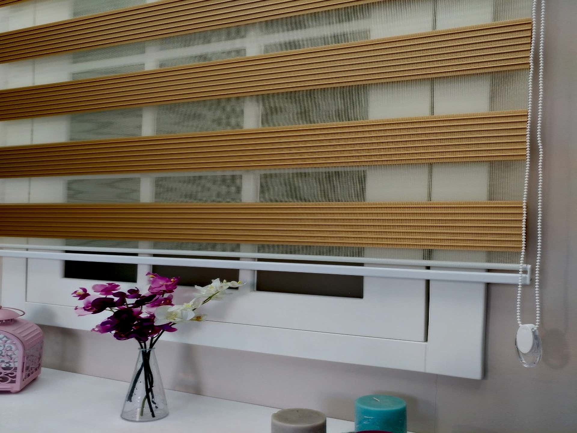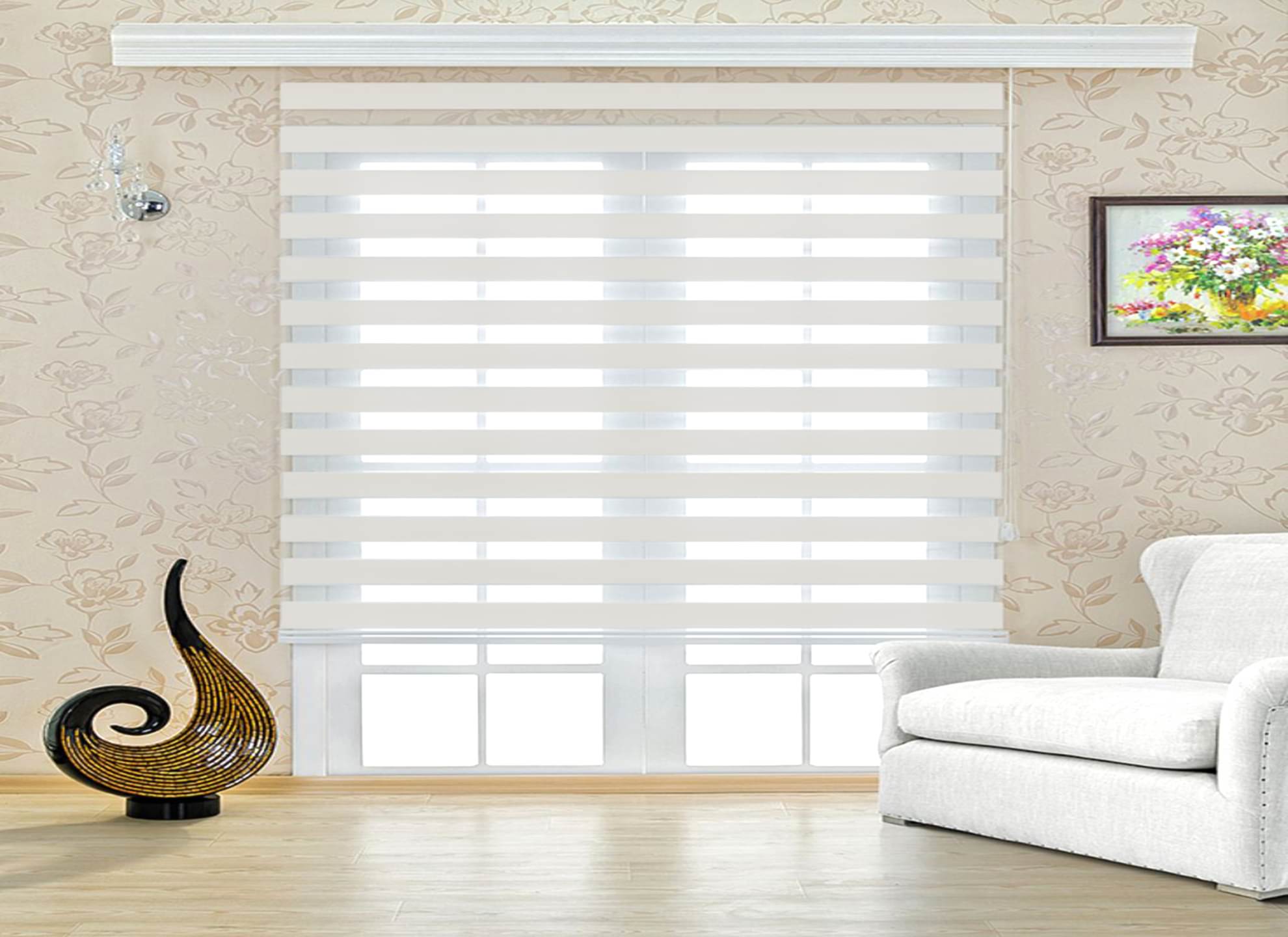 - Dekoratif Görünüm; Zebra perdeler, modern ve şık bir görünüme sahiptirler. İki farklı kumaşın bir araya gelmesiyle oluşan desen, odanıza dinamik bir dokunuş katar.